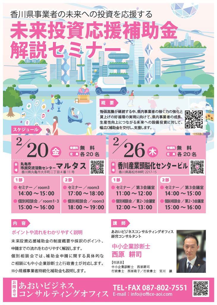 香川県「未来投資応援補助金」 解説セミナー開催します!