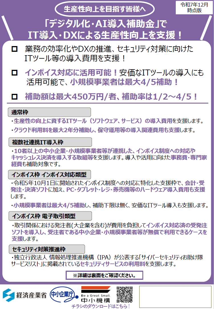 当事務所が申請支援を行う主な補助金